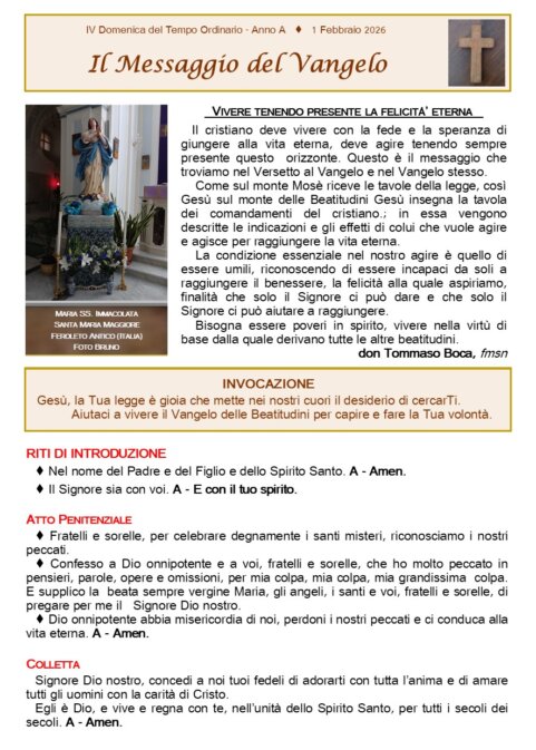 Foglietto Santa Messa 01-02-2026 IV Domenica del TO
