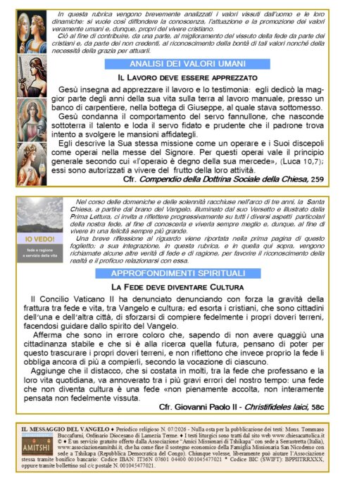Il Foglietto viene offerto gratuitamente dall'Associazione "Amici Missionari di Tshikapa", che ha come fine il sostegno economico della Famiglia Missionaria San Nicodemo, con sede a Tshikapa, nella Repubblica Democratica del Congo.
