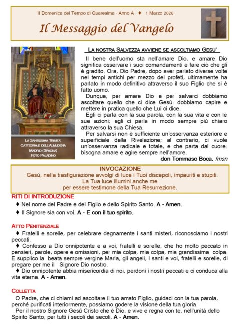 Foglietto Santa Messa 01-03-2026 I Domenica del TQ