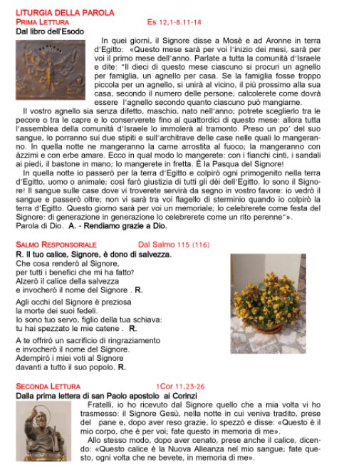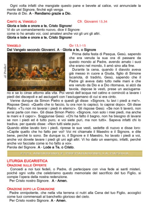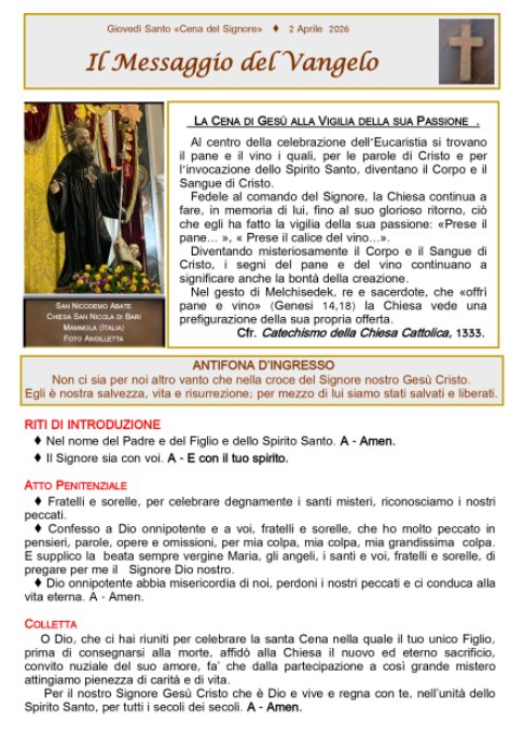 Foglietto Santa Messa 02-04-2026 Giovedì Santo