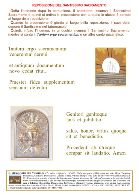 Il Foglietto viene offerto gratuitamente dall'Associazione "Amici Missionari di Tshikapa", che ha come fine il sostegno economico della Famiglia Missionaria San Nicodemo, con sede a Tshikapa, nella Repubblica Democratica del Congo.