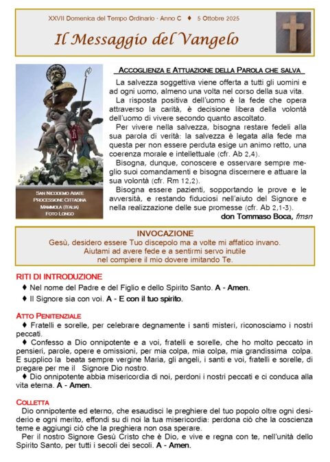 Foglietto Santa Messa 05-10-2025