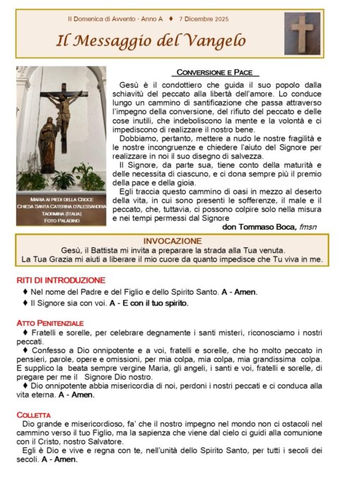 Foglietto Santa Messa 07-12-2025 II Avvento