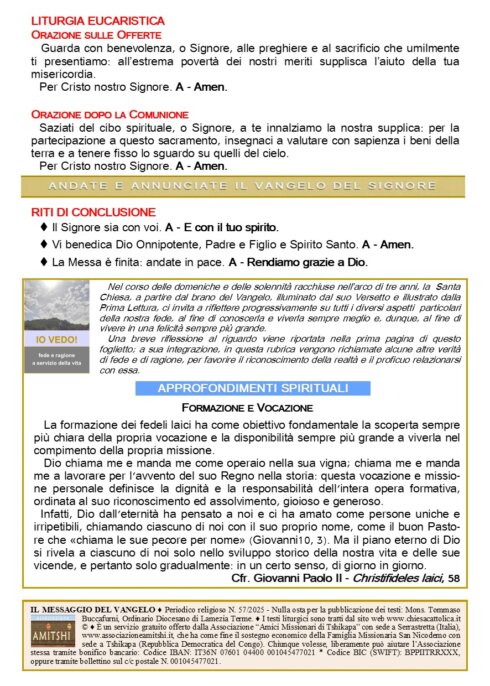 Il Foglietto viene offerto gratuitamente dall'Associazione "Amici Missionari di Tshikapa", che ha come fine il sostegno economico della Famiglia Missionaria San Nicodemo, con sede a Tshikapa, nella Repubblica Democratica del Congo.