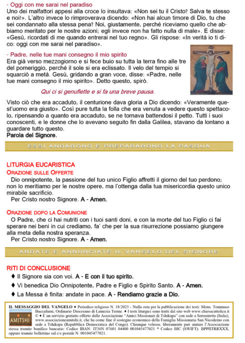 Il Foglietto viene offerto gratuitamente dall'Associazione "Amici Missionari di Tshikapa", che ha come fine il sostegno economico della Famiglia Missionaria San Nicodemo, con sede a Tshikapa, nella Repubblica Democratica del Congo.