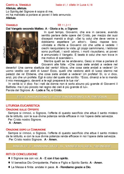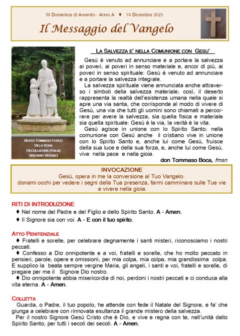 Foglietto Santa Messa 14-12-2025 III Avvento