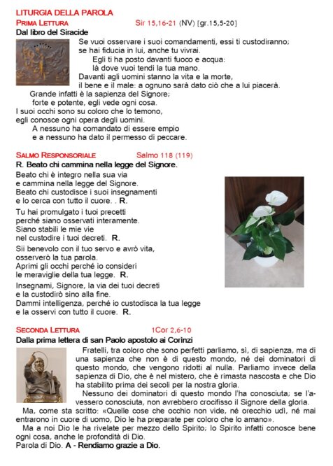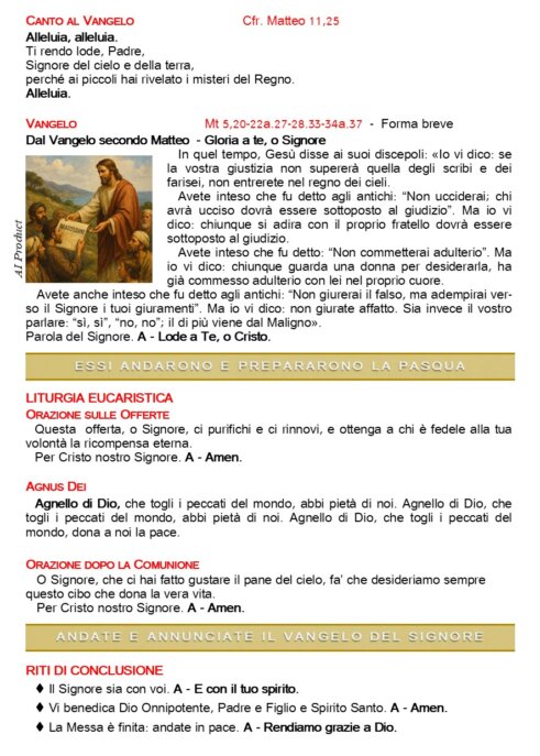 Foglietto Santa Messa 15-02-2026 V Domenica del TO