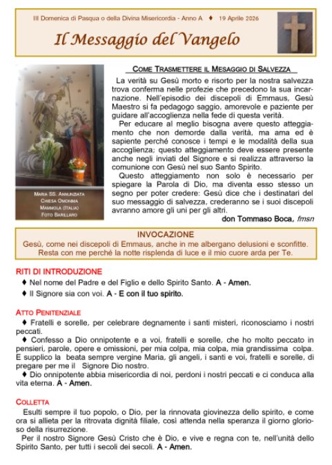 Foglietto Santa Messa 19-04-2026 III Domenica di Pasqua
