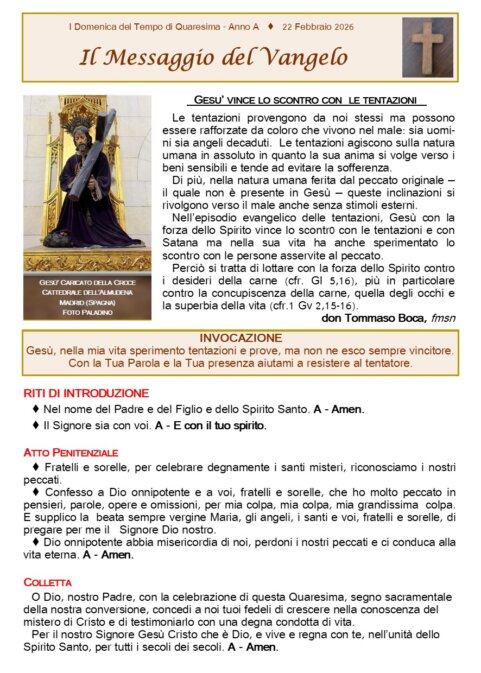 Foglietto Santa Messa 22-02-2026 I Domenica del TQ