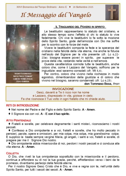 XXVI DOMENICA DEL TEMPO ORDINARIO - ANNO C