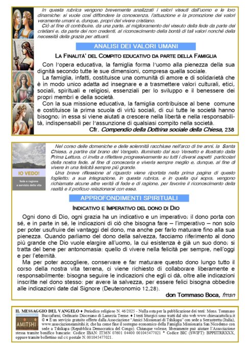 Il Foglietto viene offerto gratuitamente dall'Associazione "Amici Missionari di Tshikapa", che ha come fine il sostegno economico della Famiglia Missionaria San Nicodemo, con sede a Tshikapa, nella Repubblica Democratica del Congo.